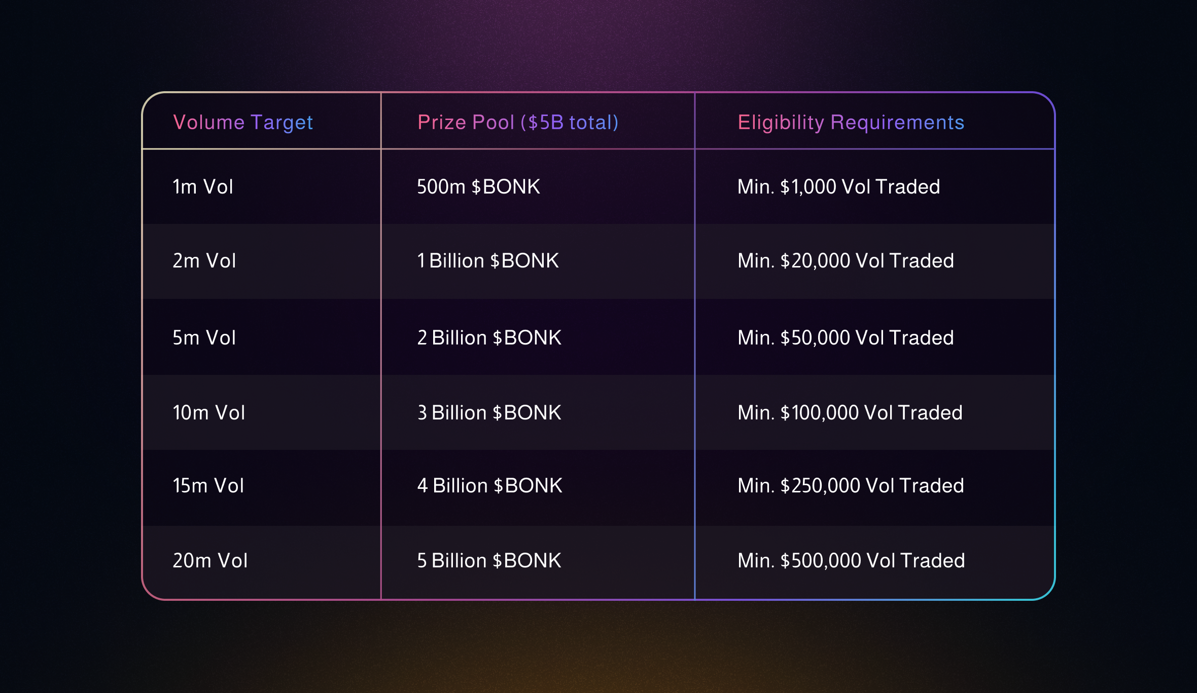 - Only wallets that have traded $20K during the Bonk Bonanza will qualify.