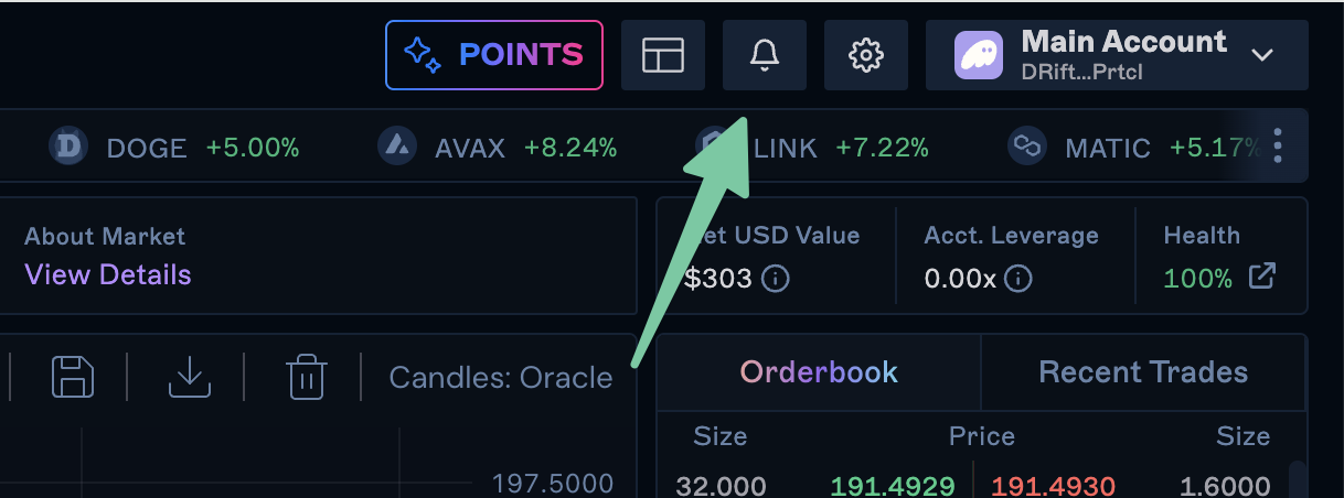 After you connect your wallet, click on the Notification Center icon in the navigation bar