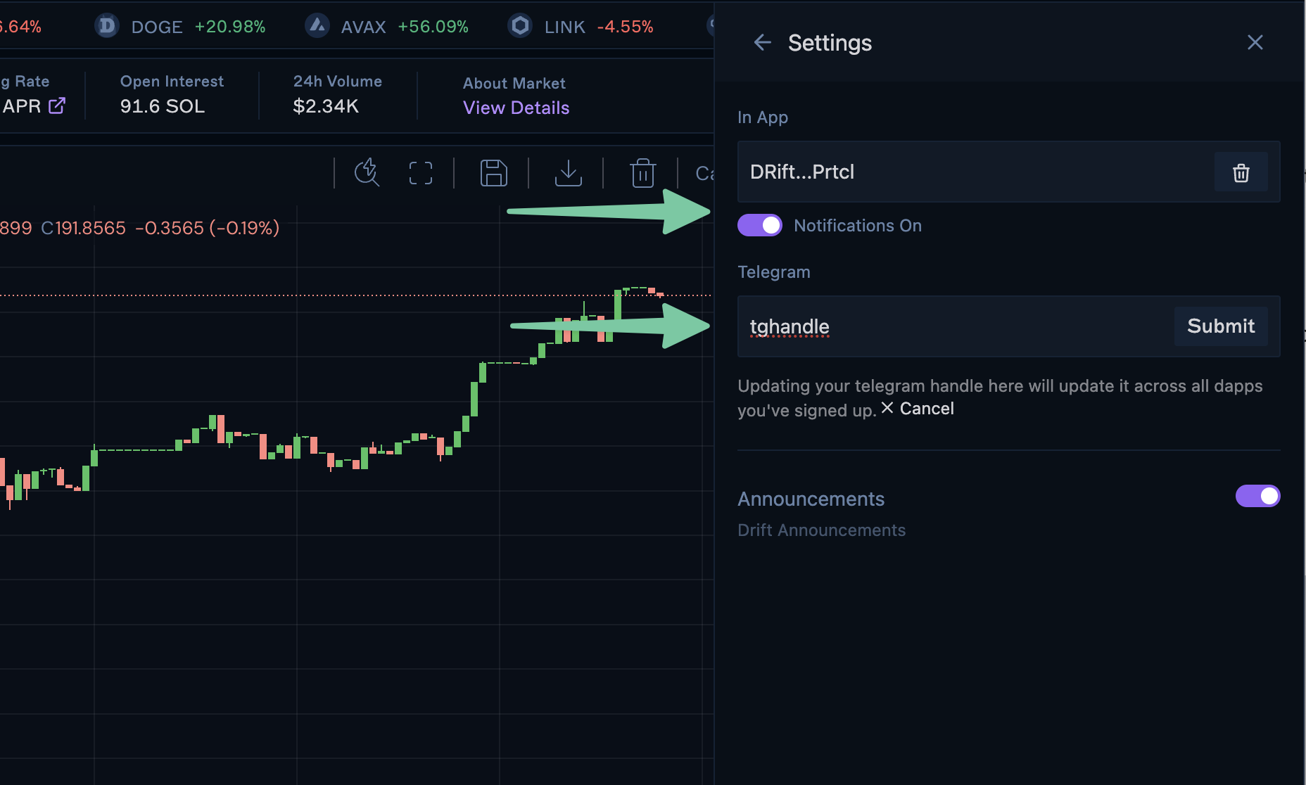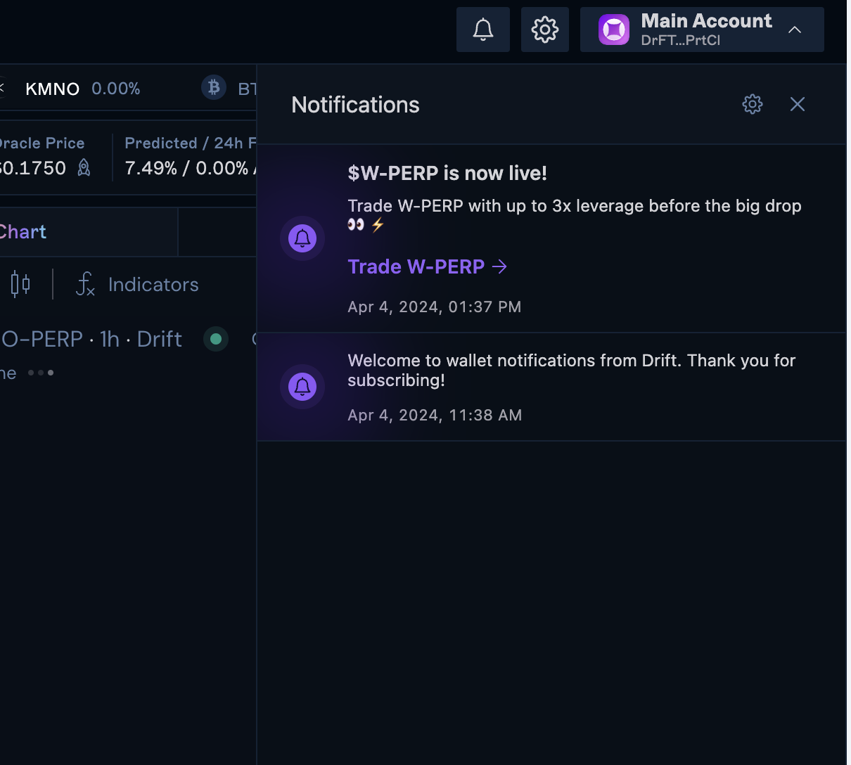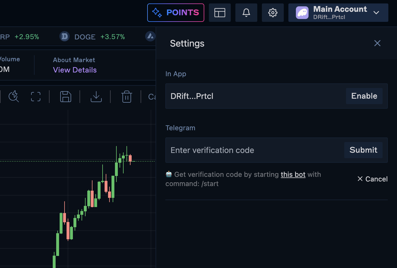Drift users can now receive notifications within the app or via Telegram to stay informed.