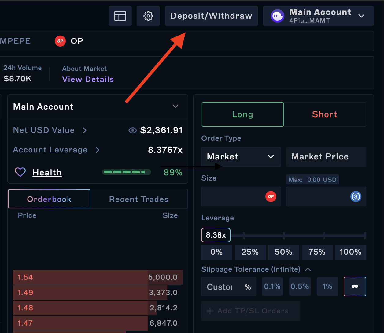 1) Visit app.drift.trade and head to the Deposit/Withdraw modal that can be found at the top-right corner of your screen