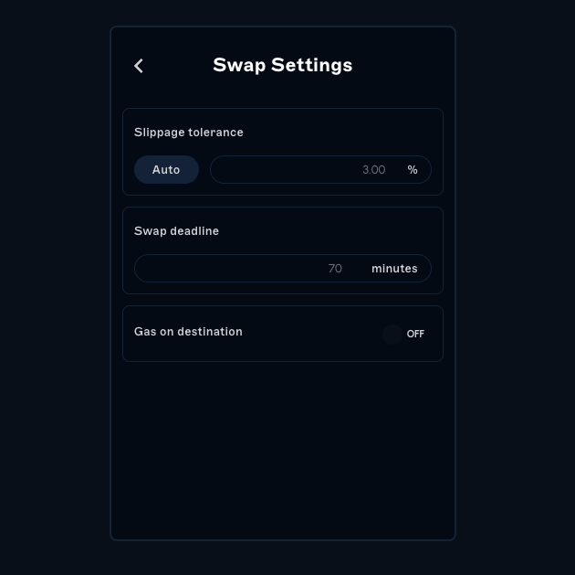 You'll be able to select the assets you want to swap, the source chain and the destination chain.