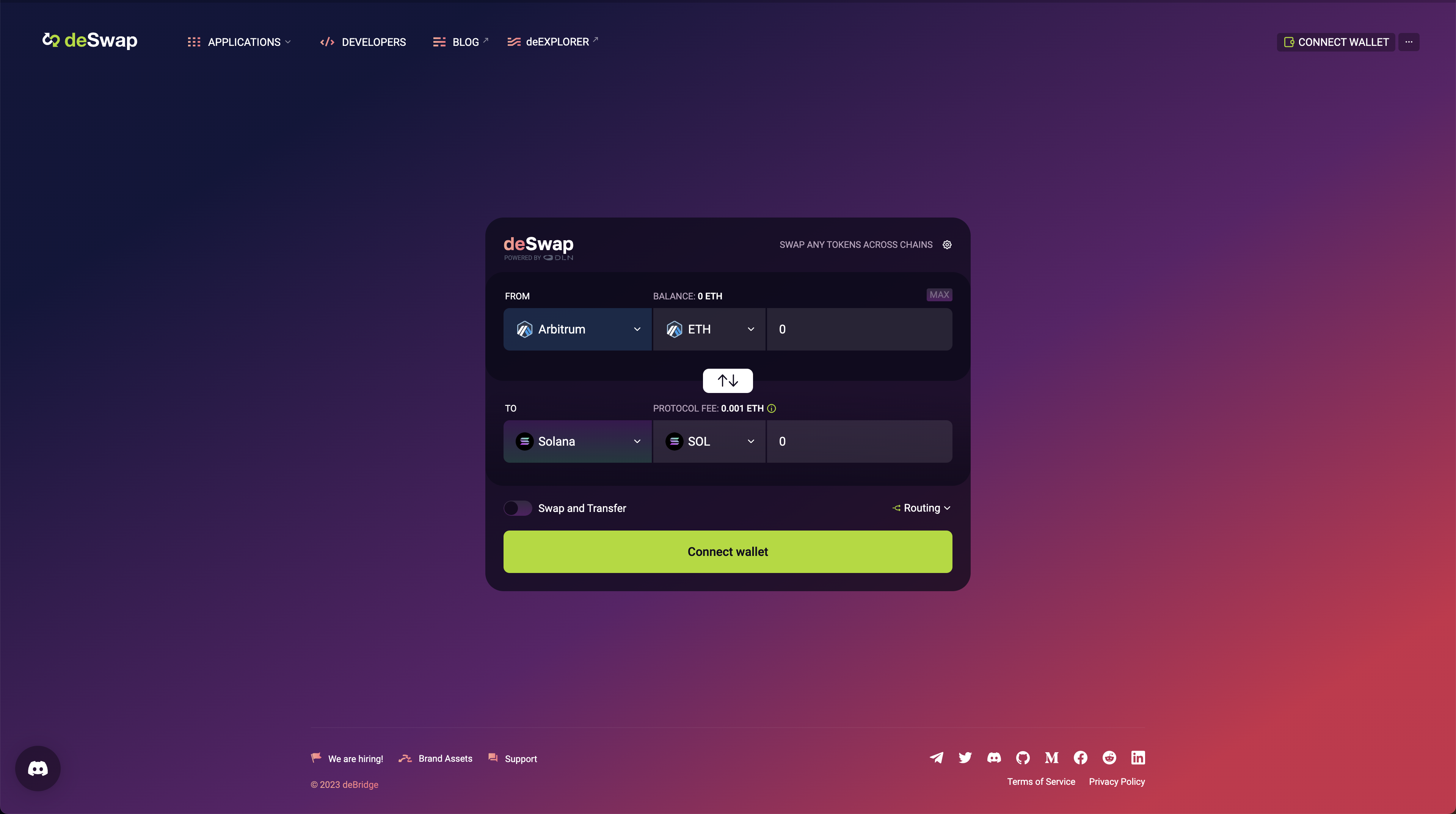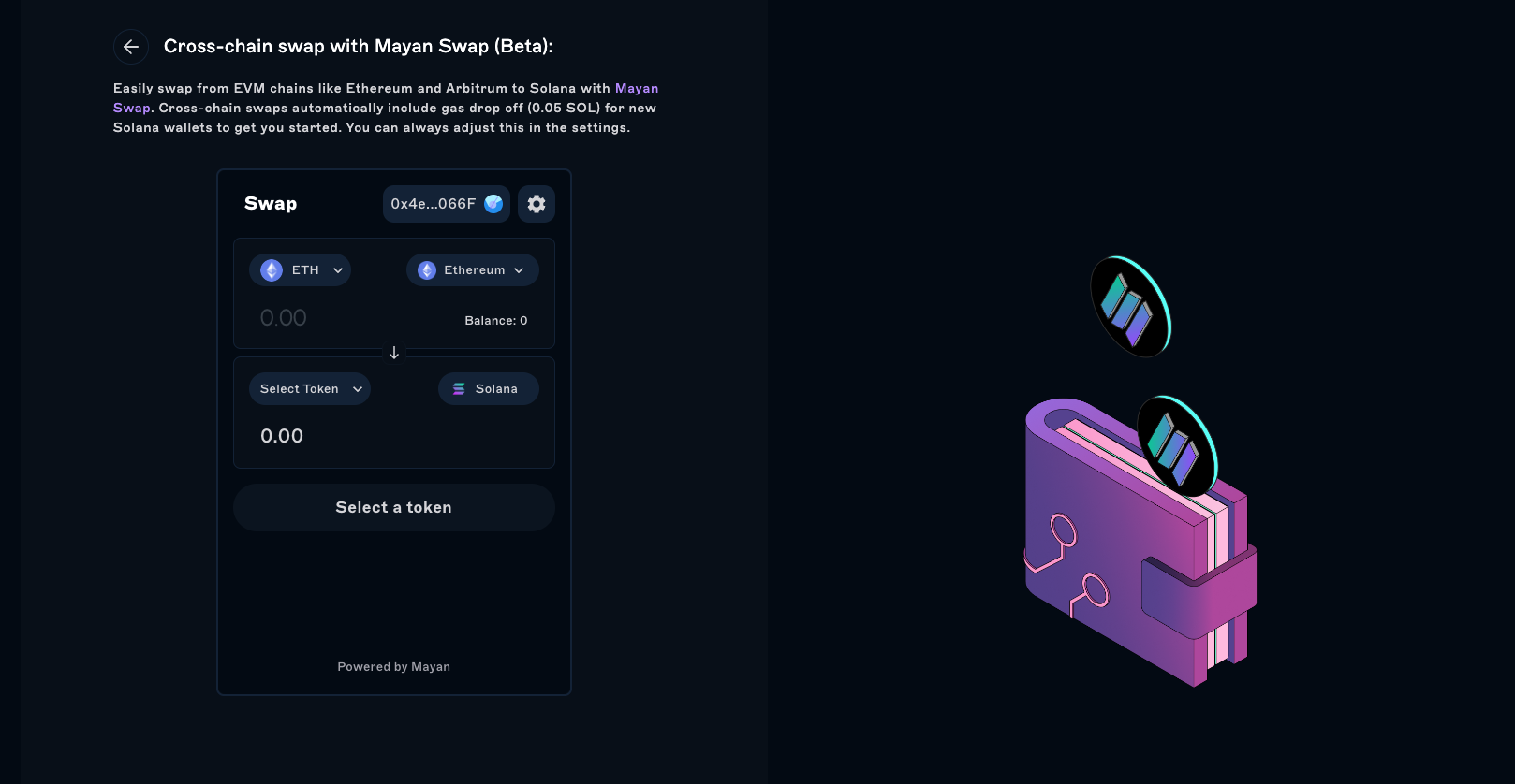 If you haven't already, connect the wallet on the chain you'd like to swap assets from.