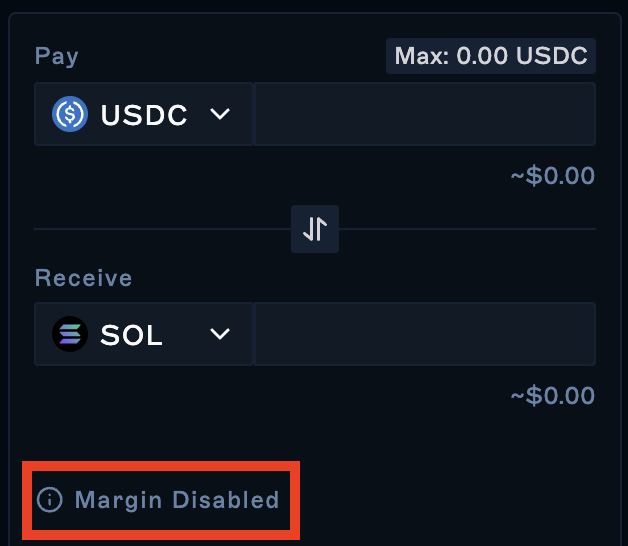 In order to perform a leveraged swap, check the trade form to make sure you have margin enabled. If not, click on it and enable it for your subaccount.