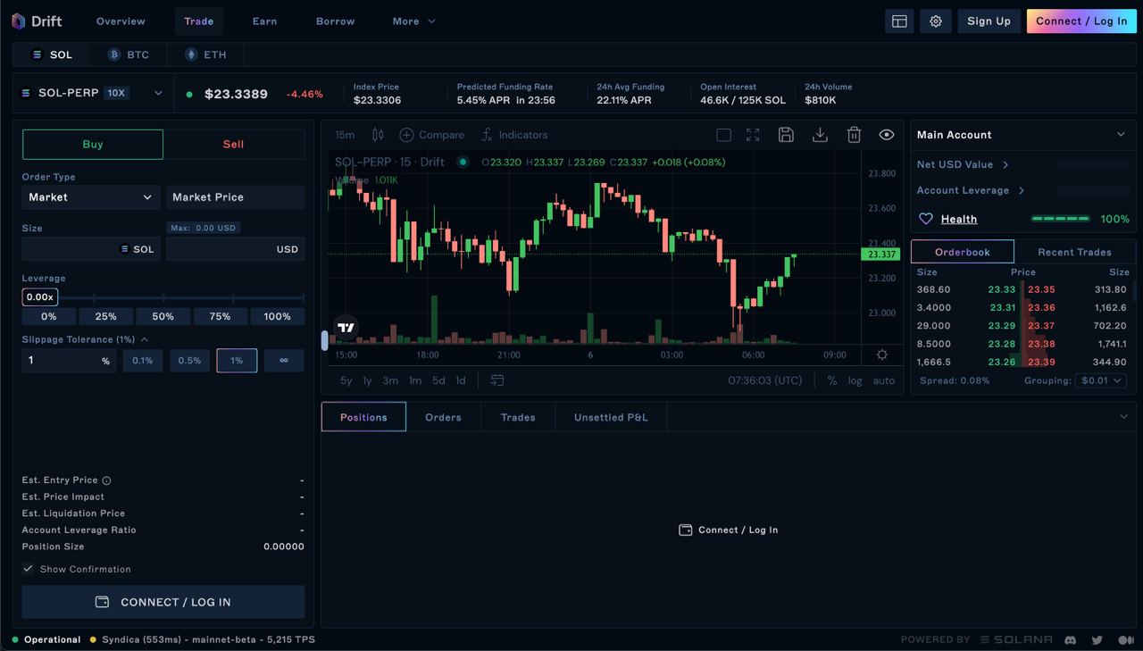 To trade on Drift, you'll need enough SOL to cover account fees (refundable) and transaction fees.