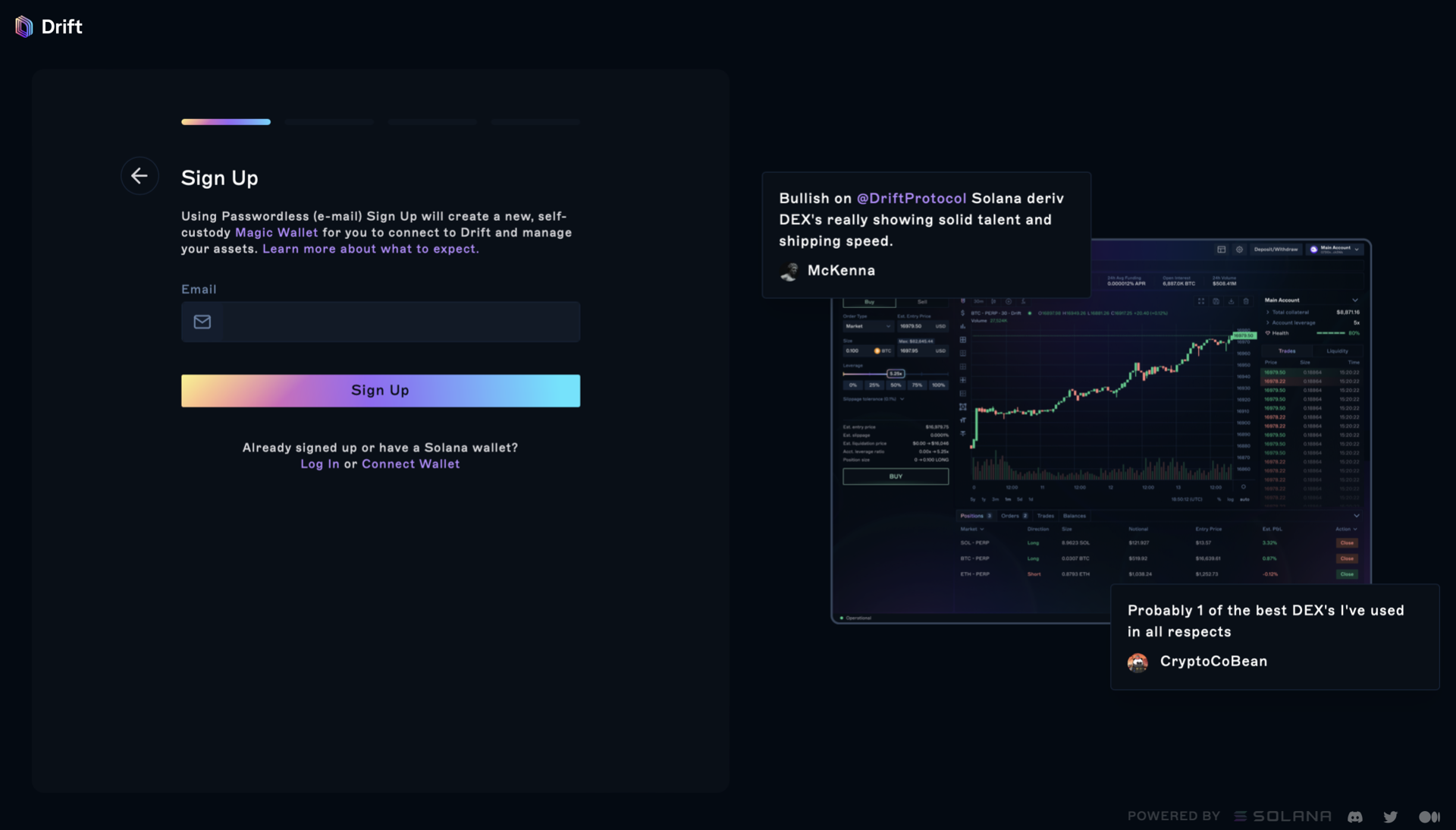 It is exciting to share that new traders will now be able to sign up and log into their Drift account using their email.