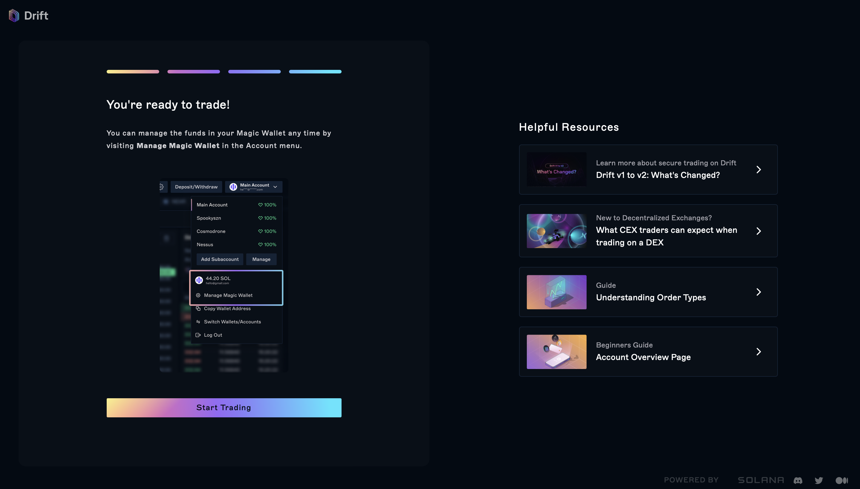 Once you see the page below, you’re all set and can start trading on Drift.